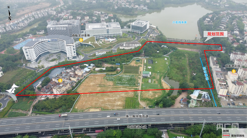 本次规划范围位于广州市花都区狮岭镇,规划面积6.68公顷(约100亩),紧邻珠三角环线高速(山前旅游大道),毗邻南航广州产教融合实训基地、南航碧花园住宅小区,交通条件优越。通过规划调整有效落实省重点建设项目建设,推动区域航空产业高质量发展。